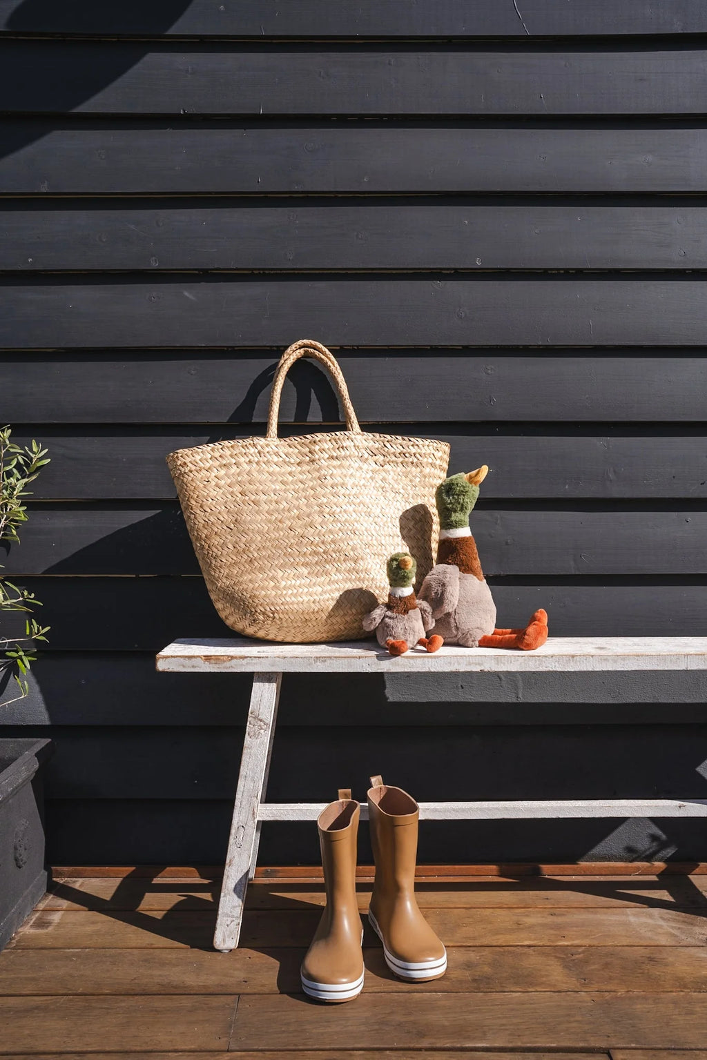 Hugo is the dashing duck who calls the Nana Huchy farm home. From the moment he hatched, he was a natural in the water-gliding gracefully across the pond with effortless charm. As dusk falls, Hugo snacks on his favorite treat: crunchy little insects that are oh-so-easy to catch in the golden light. When he's not swimming or snacking, he loves waddling around the farm like he owns the place, proudly showing off his glossy green feathers. Calm, confident, and full of character, Hugo brings a splash of charm and cheeky swagger to life on the farm.