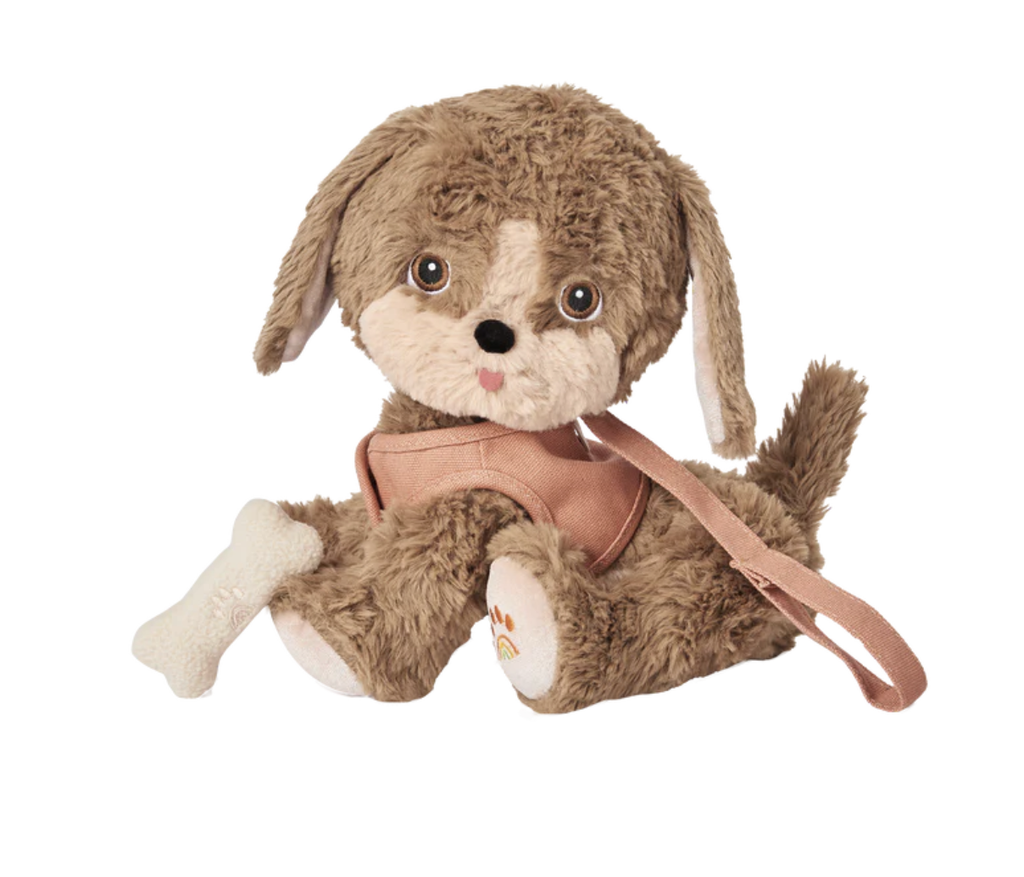 Made from soft plush fabric that is 100% recycled with velvety ears to nuzzle, Honey is fully poseable and can stand, lay down and even sit! Honey's head moves and is embroidered with the sweetest doggy face, plus there's a rainbow surprise on one of Honey's little paws!