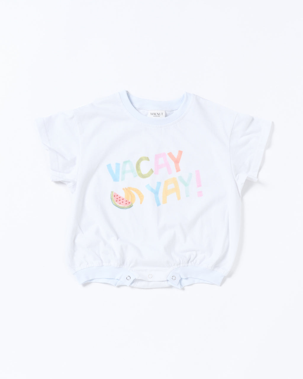 Ready for holiday vibes? The Vacay Yay Charlie Romper brings the fun with its cheerful pastel print and fruity flair. Crafted from soft, breathable cotton and featuring snap buttons for quick changes, it’s the perfect piece for sunny days and happy play.
